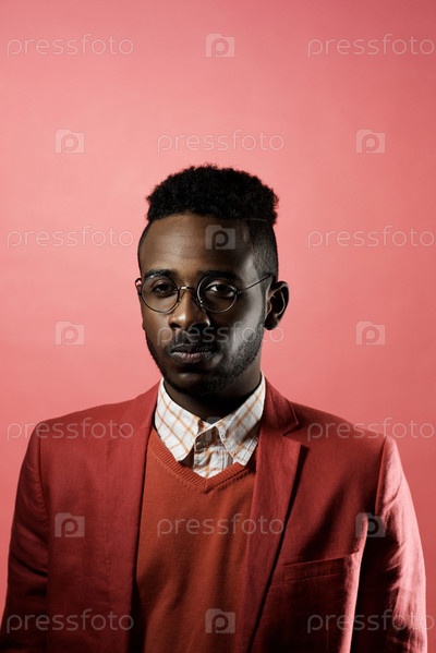 Портрет молодого чернокожего в красном костюме