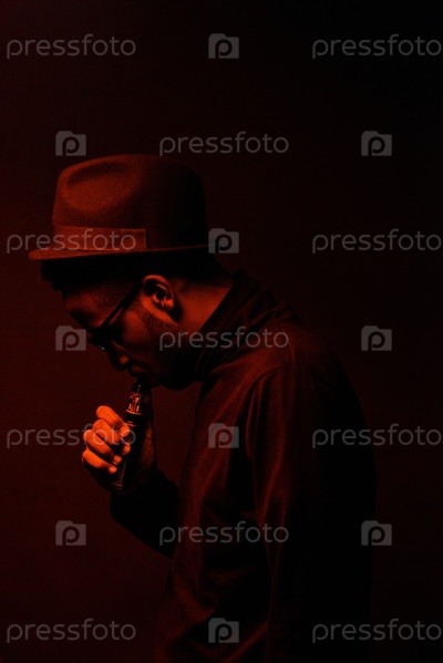 Портрет чернокожего человека с вейпом в темной студии