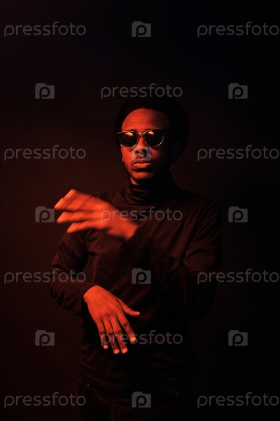 Студия 'Портрет молодого чернокожего парня в красном свете'