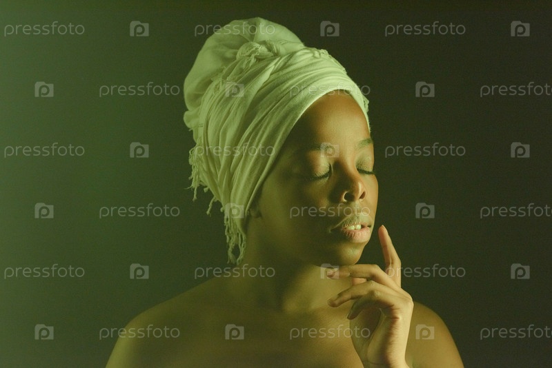 Художественный портрет чернокожей женщины в белом темном тюрбане