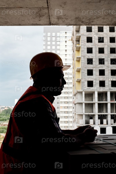 Человек, носящий жесткую шляпу и курирующий строительный участок