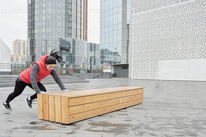 Решительная женщина делает упражнения по разминке на свежем воздухе