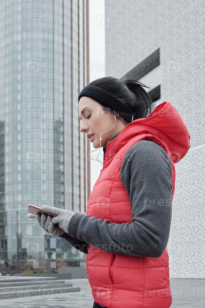 Женщина-бегун, использующая смартфон для тренировки на открытом воздухе