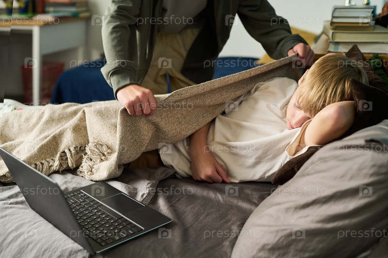 Братья-подростки заботятся друг о друге, отдыхая с ноутбуком