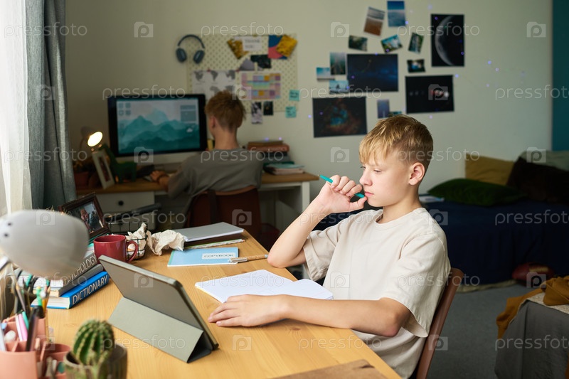 Братья-подростки учатся вместе с цифровыми устройствами дома