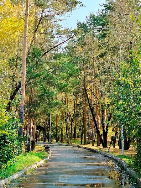 Аллея в весеннем парке после первого дождя