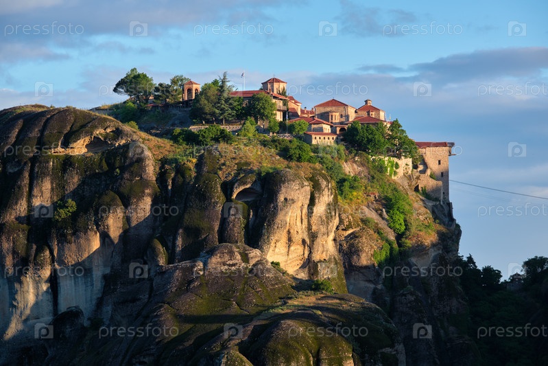 Монастырь Метеорон в знаменитом греческом туристическом месте Meteora в Греции на рассвете