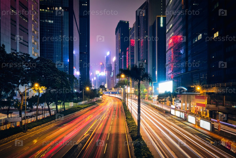 Уличный трафик в Гонконге ночью