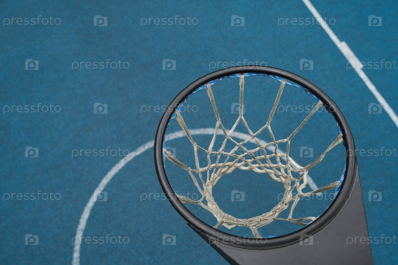 Наружный баскетбольный люк, стоящий над голубой площадкой во время игры в стритбол