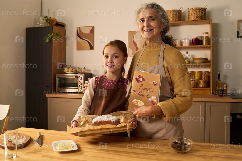 Старшая женщина и молодая девушка пекутся вместе на уютной домашней кухне