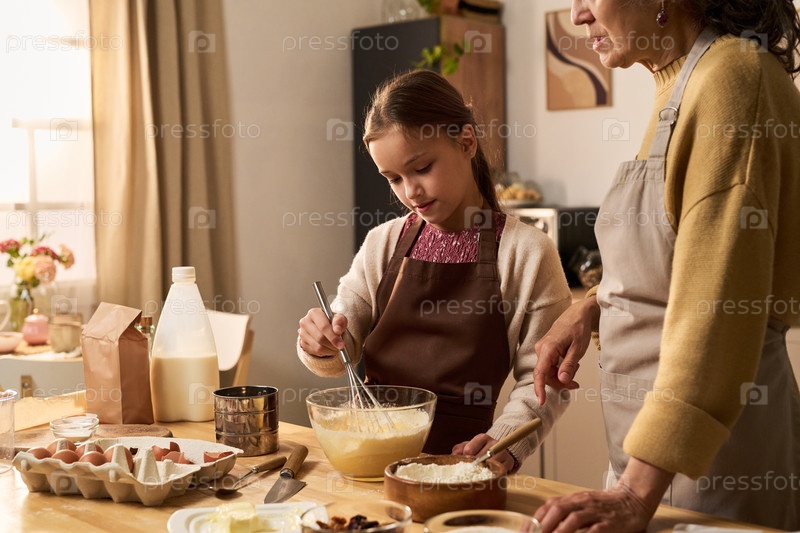 Пекарня с женщиной среднего возраста на кухне подготавливает девушку для битья