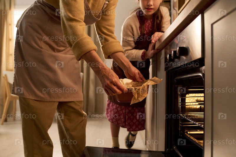 Женщина средних лет и молодая девушка пекутся вместе на кухне