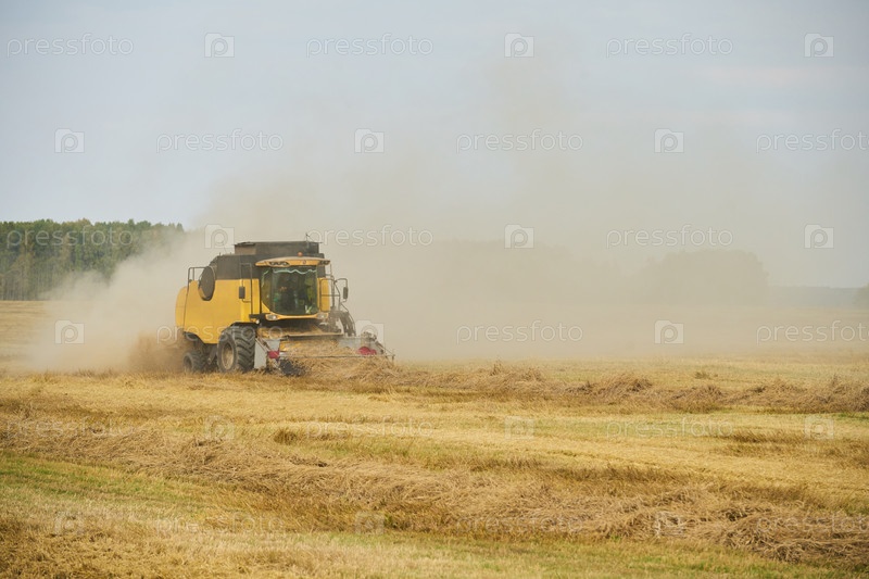 Сельскохозяйственный комбайновый сборщик, работающий в сельском поле во время сезона жатвы