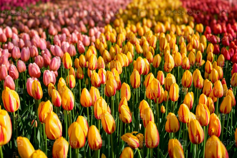 Цветущие тюльпаны в цветочном саду