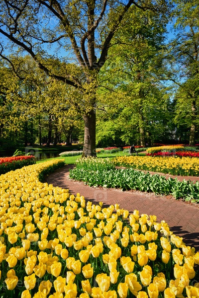 Цветущие клумбы розовых тюльпанов в цветочном саду Кеукенгофа, также известном как Сад Европы, является одним из крупнейших цветочных садов мира и популярной туристической достопримечательностью