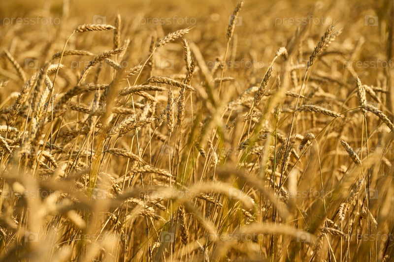 Золотые пшеничные уши, раскачивающиеся в поле во время солнечного летнего дня
