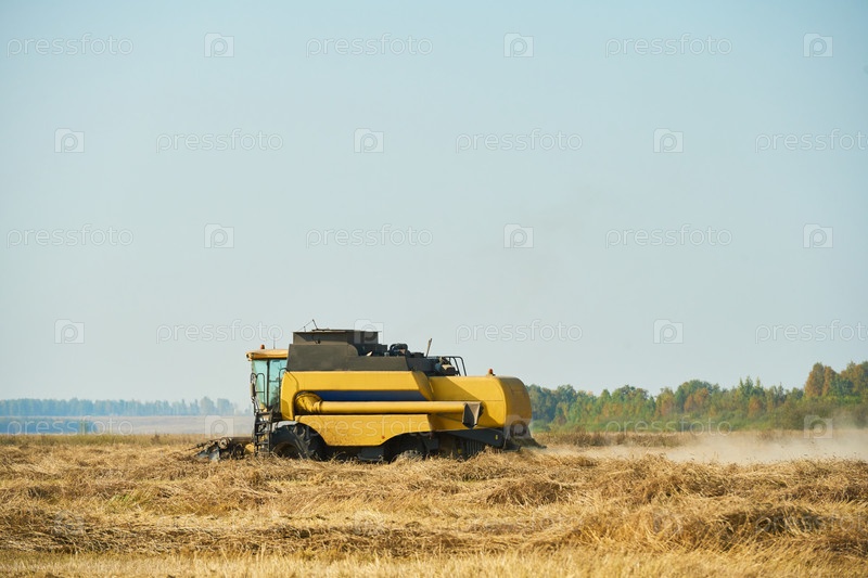 Желтый сельскохозяйственный комбинат собирает пшеничные стебли на пыльных сельских фермах
