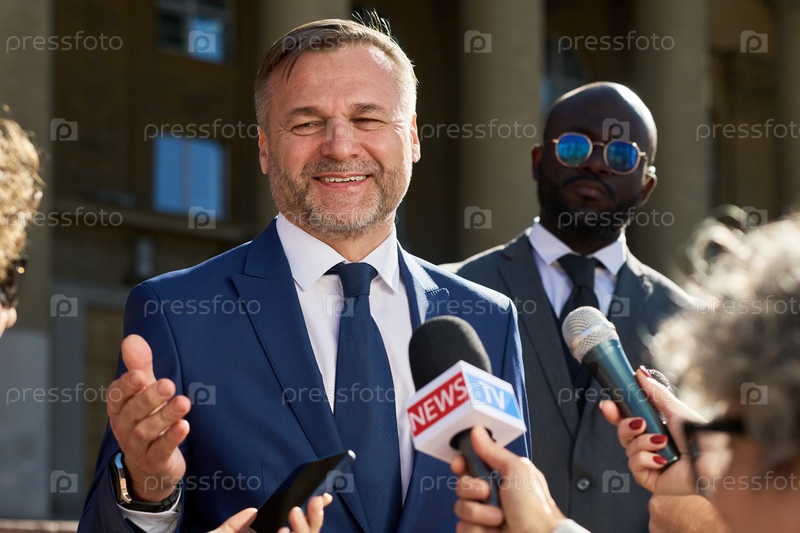 Мужчина средних лет говорит с журналистами во время открытой пресс-конференции