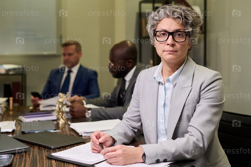 Портрет женщины среднего возраста, посещающей деловую встречу в офисе