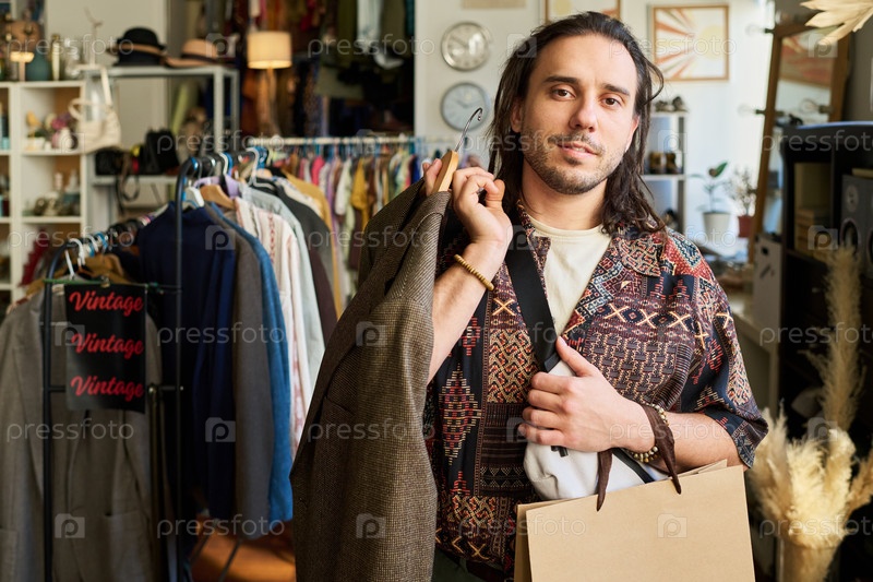 Портрет молодого взрослого мужчины, совершающего покупки в ювелирном магазине Holding Jacket