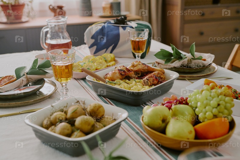 Таблица Кванза, на которой изображена традиционная еда и праздничные украшения