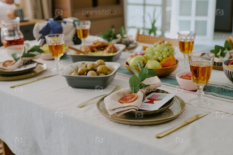 Установка стола Kwanzaa с картой Kinara и праздничным аранжировкой пищи