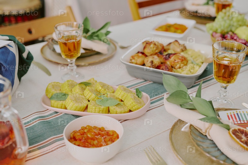 Традиционная столовая установка Kwanzaa с кукурузой и праздничной пищей