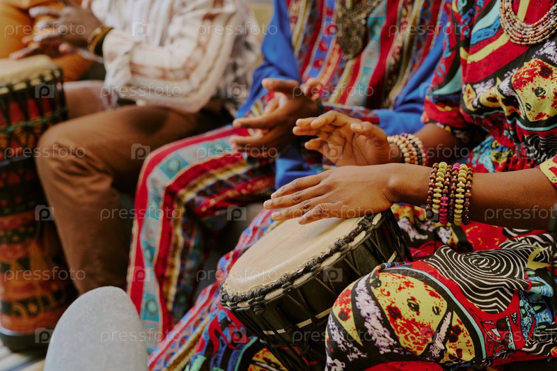 Черные взрослые празднуют Кванза, играя на барабанах и хлопая в ладоши