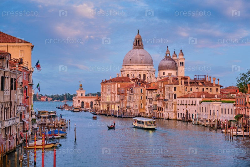 Вид на Большой канал Венеции и церковь Санта-Мария делла Салуте при закате