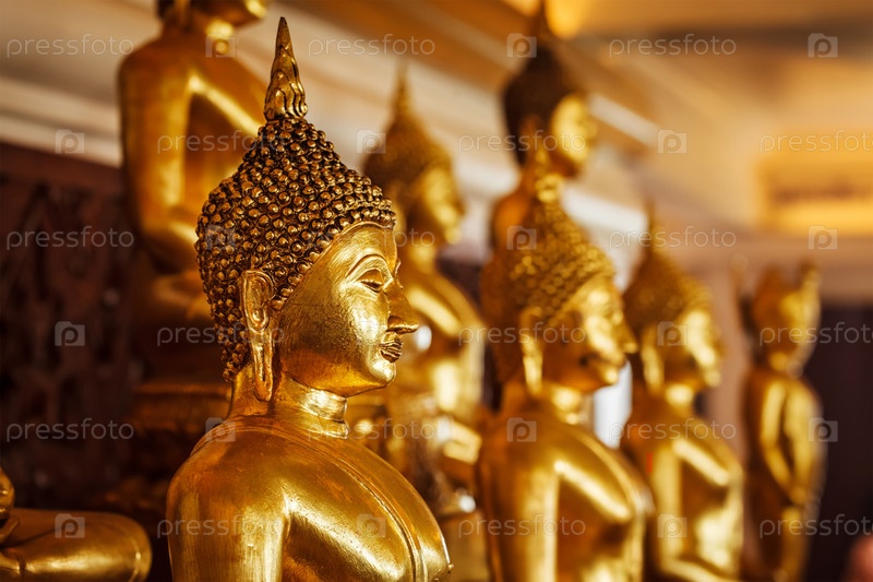 Статуи Золотого Будды в Wat Saket (Золотая гора), Бангкок, Таиланд