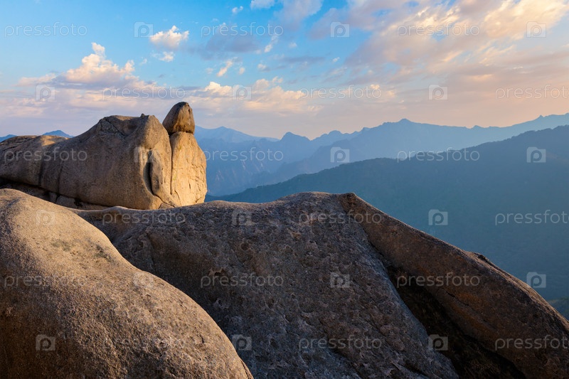Вид с скалы Ульсанбави на закате.Национальный парк Сеораксан, Южная Корея
