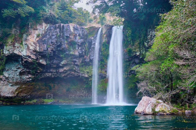 Водопады Чонцзян - одна из туристических достопримечательностей острова Джедзю, Южная Корея