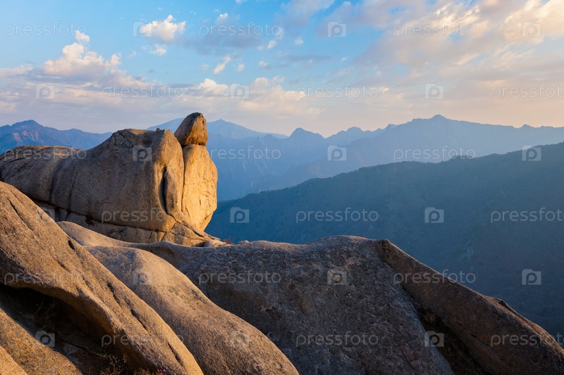 Вид с скалы Ульсанбави на закате.Национальный парк Сеораксан, Южная Корея