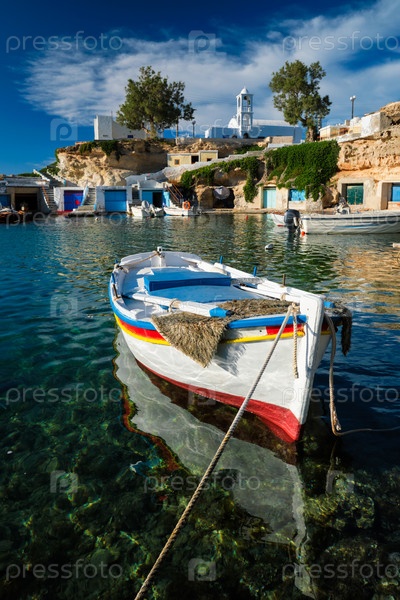 Рыболовные лодки в гавани рыбацкой деревни Мандракия, остров Милос, Греция