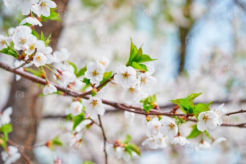 Вишневые цветки цветут на фоне весной, Южная Корея