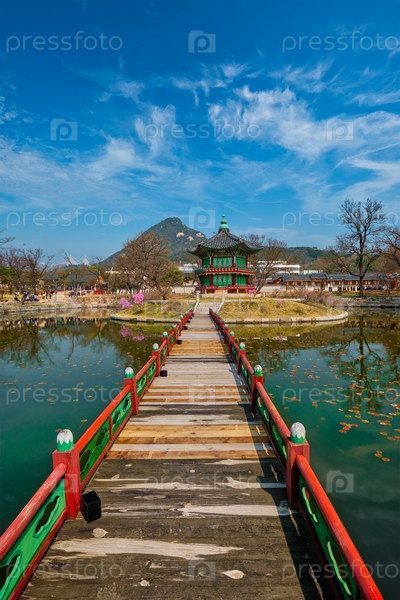 Павильон Hyangwonjeong, Дворец Gyeongbokgung в Сеуле, Южная Корея