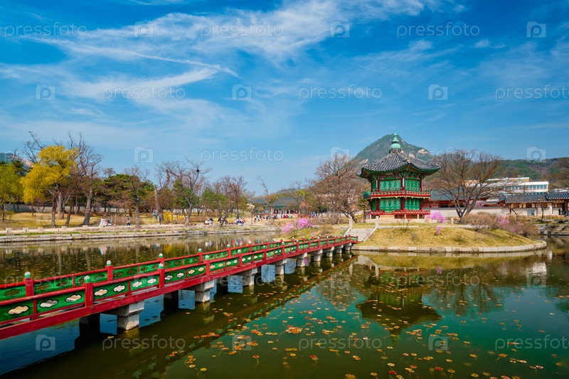 Павильон Hyangwonjeong, Дворец Gyeongbokgung в Сеуле, Южная Корея
