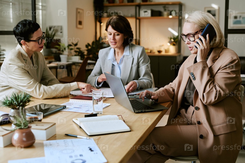 Три бизнес-женщины среднего возраста, координирующие совместные задачи проекта