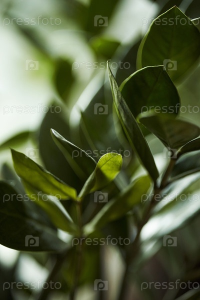 Ближайшее изображение зеленых листьев на растении, растущем в помещении с мягким естественным освещением