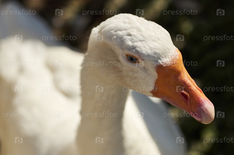 Ближайшее изображение гуся, стоящего на улице под солнечным светом днем
