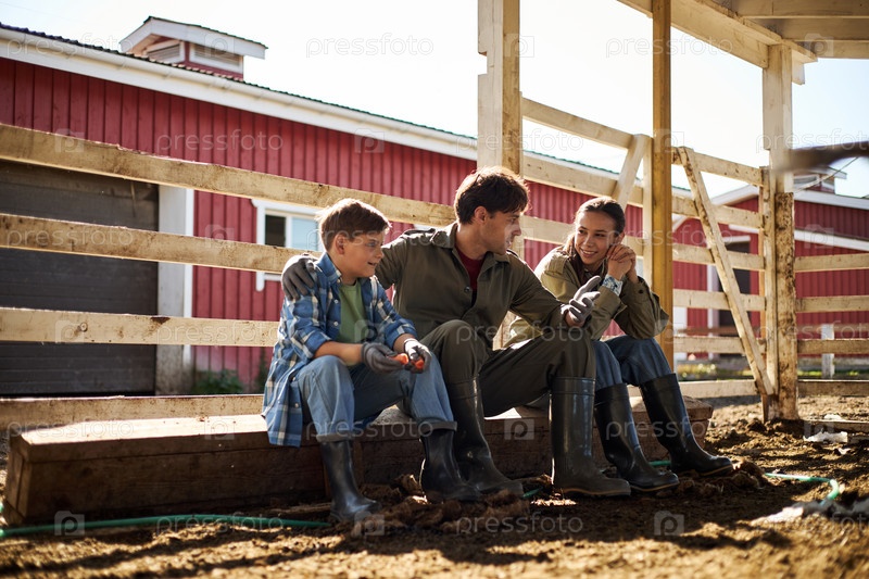 С подростковой девочкой и мальчиком, сидящими и разговаривающими на ферме