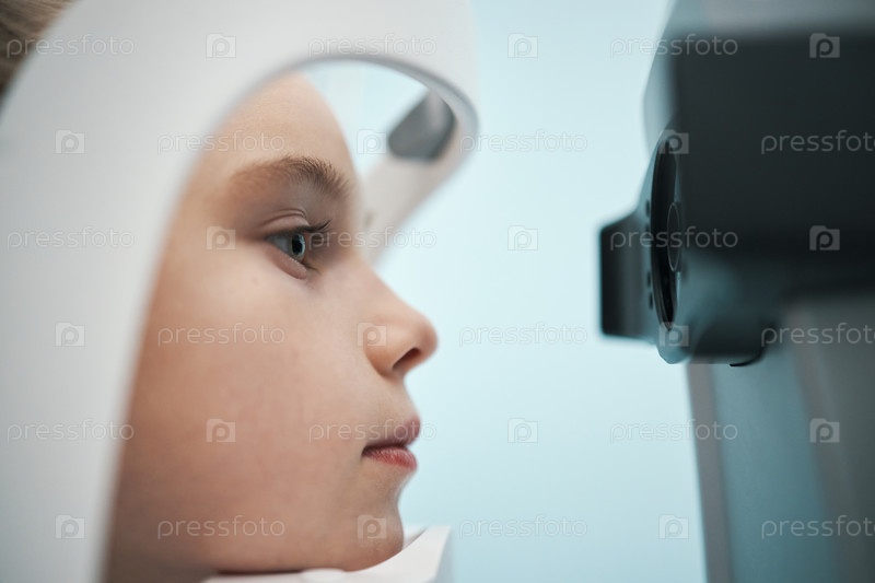 Ребенок, проходящий осмотр глаз с медицинским диагностическим устройством
