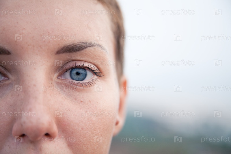 Портрет молодой женщины, смотрящей вперед с спокойным выражением лица