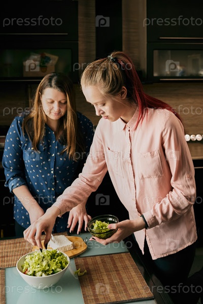 Две женщины, готовящие вместе салат