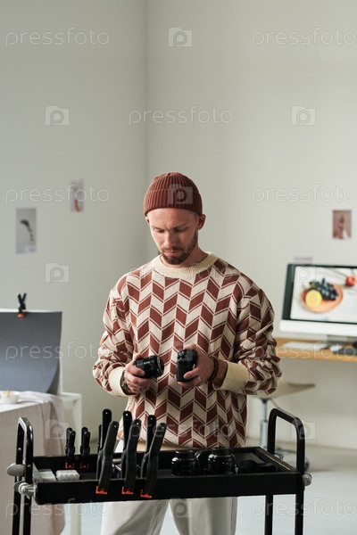 Человек, готовящий камерное оборудование в современной студии