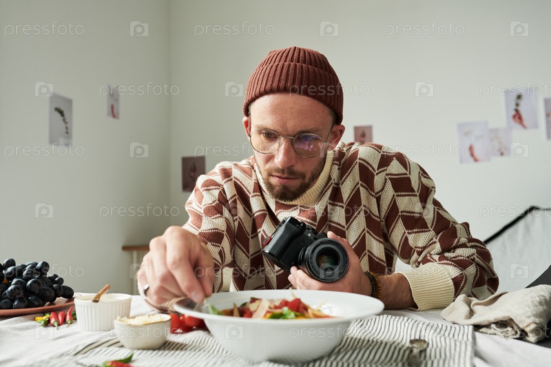 Фотографирование еды во время организации ингредиентов для салата Man