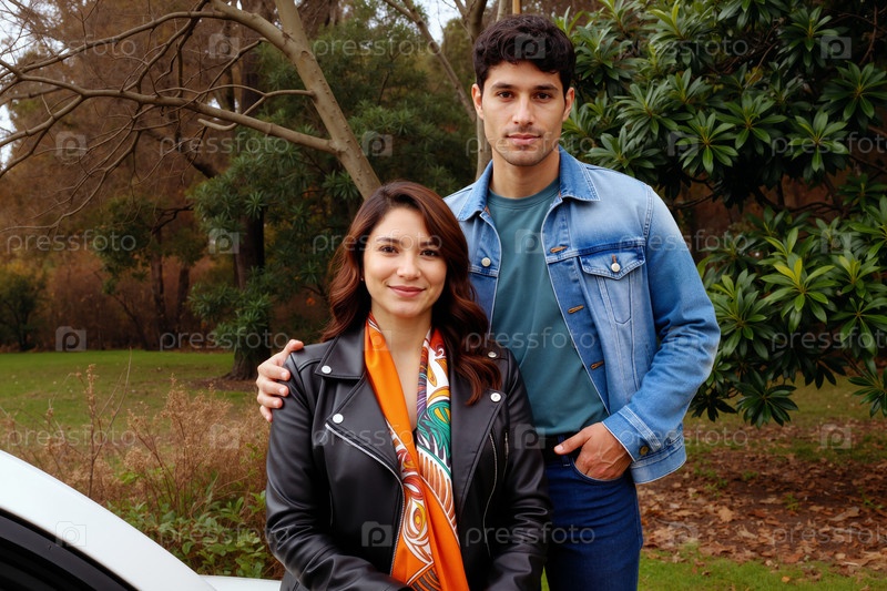 Портрет молодого взрослого мужчины и женщины, стоящих вместе на открытом воздухе