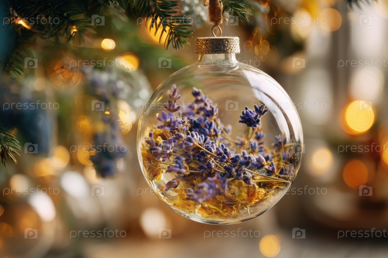 Рождественское украшение с сушеной лавандой, висящее на праздничном дереве