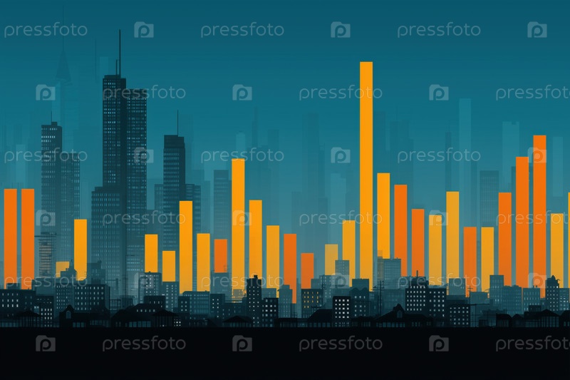 Городская горизонтная линия с высокими современными освещенными зданиями на закате