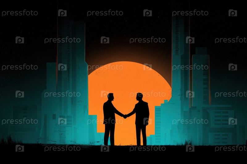 Молодые взрослые мужчины, пожавшие руки против городского солнцестояния Skyline Two